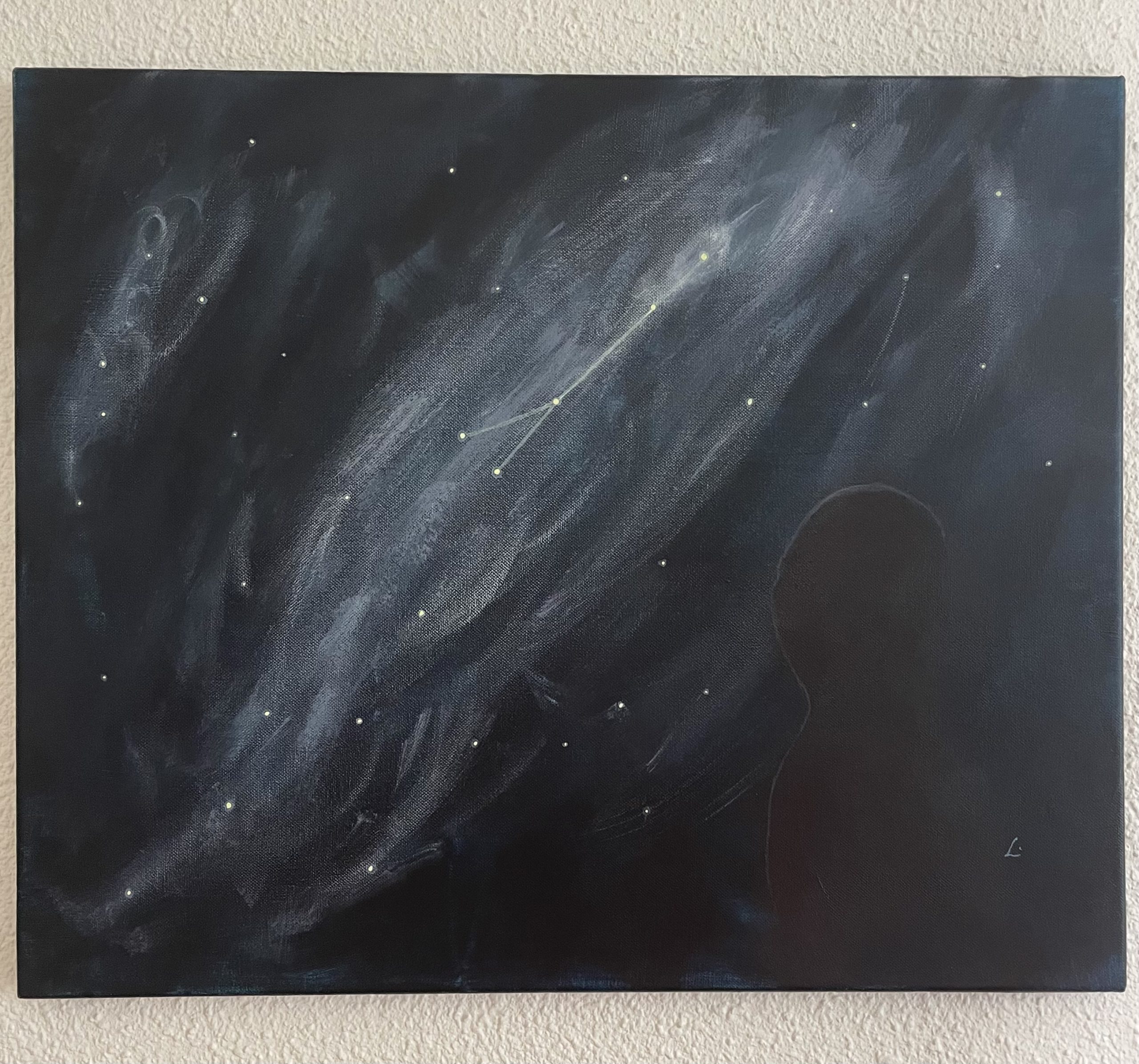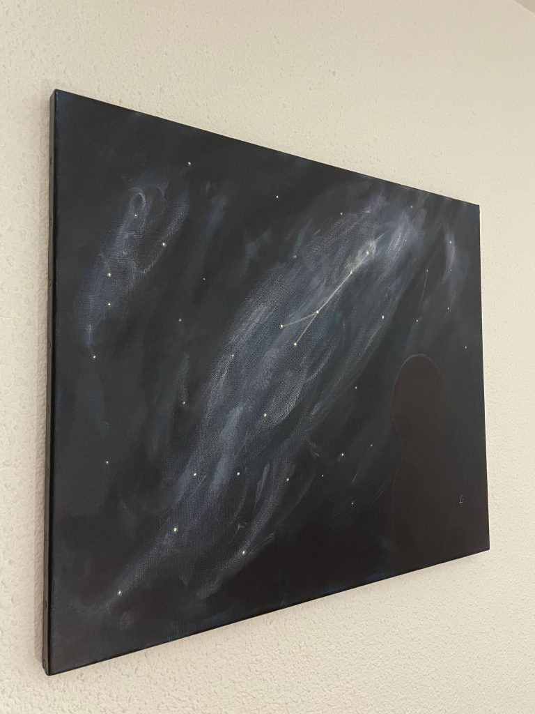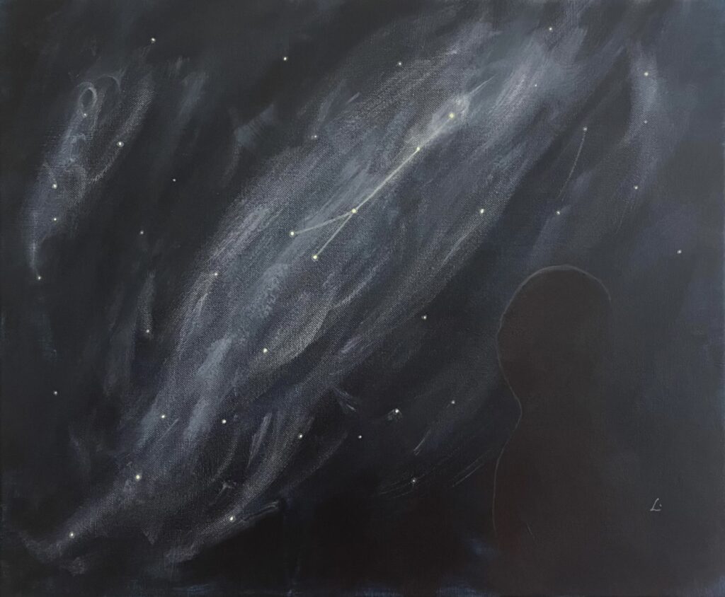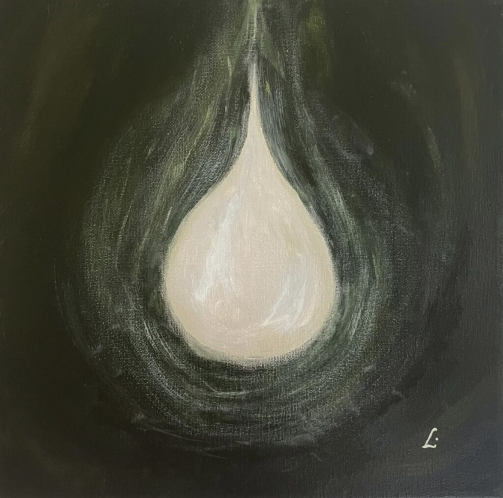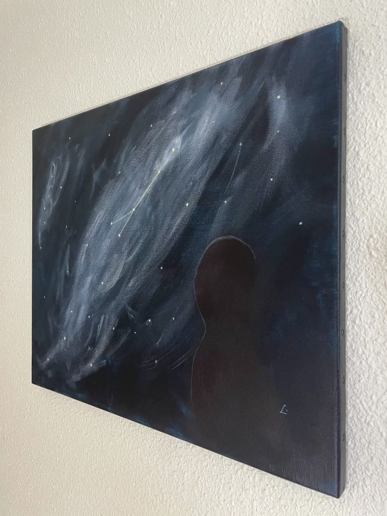 Cette toile évoque l’amour de soi — pas celui qu’on affiche, mais celui qu’on cultive à l’intérieur.
